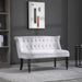 Adorn your abode with the sublime opulence of our gray velvet loveseat, featuring the sophistication of side scrolling, exquisitely carved legs, and meticulous button tufting. This exquisite piece echoes a timeless style that seamlessly integrates into your decor, bringing a touch of grace and refinement.