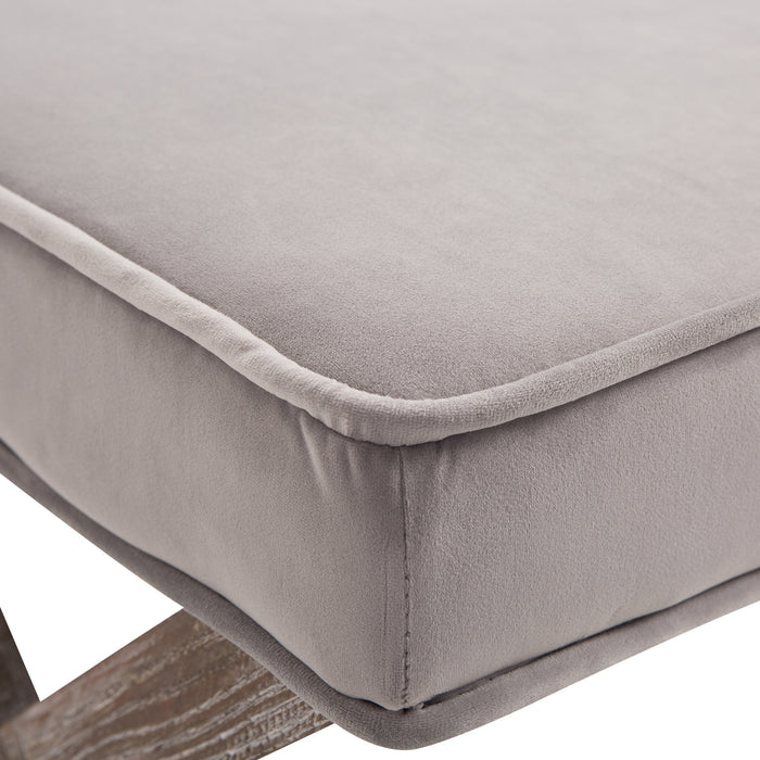 Experience stability and durability with the stool's solid hardwood frame finished with a luxurious velvet top. The plush cushioning offers superior comfort, making it an inviting piece for both relaxation and additional seating.