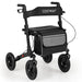 Colour: Black/Silver/Red Material: Aluminum + Fabric + Plastic Overall Width: 62 cm Overall Depth: 82 cm Seat Area Dimension: 46 cm x 25 cm Seat Height: 58 cm Adjustable Handle Height: 81.5 cm-97 cm Folded Dimension: 59 cm x 36 cm x 44 cm (L x W x H) Max User Weight: 140 kg Net Weight: 10 kg Package Includes: 1 x Rolling Walker 1 x Instruction Manual Box QTY: 1(May vary by batch)