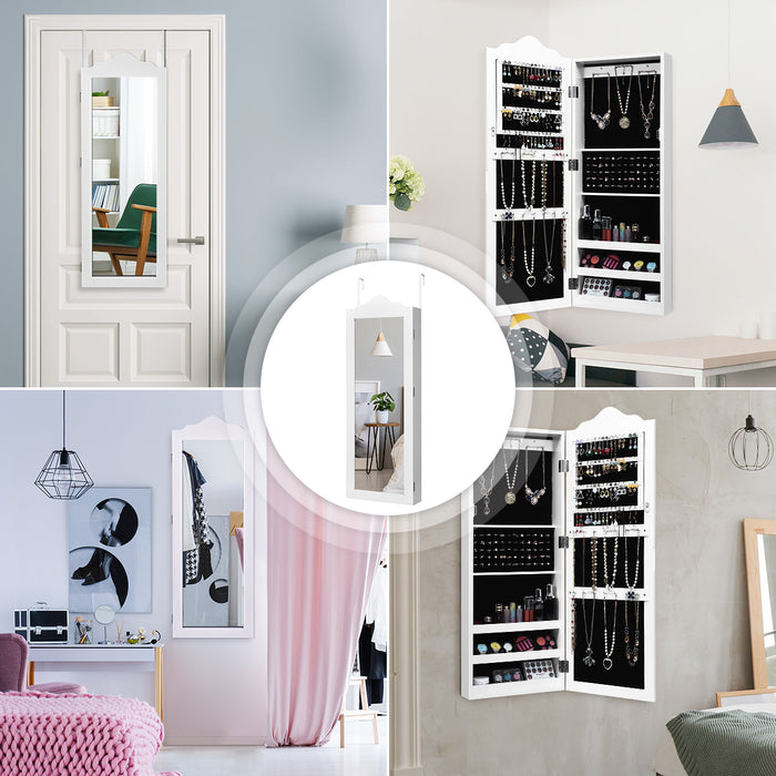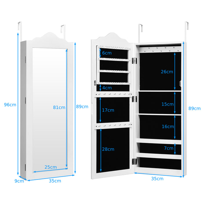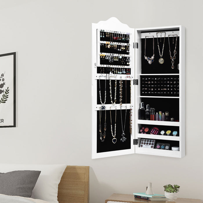 Whether you prefer to save floor space or desire a hanging option, the White Jewelry Armoire is versatile enough to accommodate your needs. This piece comes with double hanging hooks for quick and easy installation, giving you the freedom to mount it on a wall or suspend it over a door. It's perfect for cozy spaces or anyone who wants to avoid using up precious floor real estate.