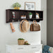 Keep your essentials within grasp yet neatly out of sight. Our storage marvel offers four individual compartments to neatly categorize and store various household items. From books and bottles to all those little odds and ends, everything finds its rightful place. For added convenience, five sturdy hooks grace the lower section, awaiting your coats, keys, and umbrellas, placing key on-the-go items at your fingertips.