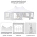 Spanning an impressive 8.9 by 6.5 meters, the canopy's generous dimensions promise ample space for your guests to mingle and celebrate. At the zenith, it reaches a lofty 3.8 meters, while the edges hover at a comfortable height of 2 meters. The entire structure is solidified with a suite supplied ropes, ground stakes, and spiral nails, assuring that it stands securely on any terrain.