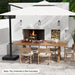 A weighted cantilever umbrella base for a reliable umbrella support system! Crafted with weather-resistant, and crack-resistant HDPE, the fillable umbrella stand is long-lasting. With a fillable design that can hold 45 kg of water, 60 kg of sand, or 80 kg of wet sand, you can trust this stand to keep your umbrella secure in various weather conditions. The side drainage hole makes it effortless to empty the stand when needed. The square umbrella stand is suitable for 300 cm offset umbrellas with a 38 mm and 48 mm diameter umbrella pole. Equipped with a cross bracket that seamlessly matches with your offset umbrella, this stand is easy to set up and use. Plus, considerate details make our offset umbrella base a reliable choice. The lightweight design and 2 portable handles ensure easy movement and transportation. Also, the anti-slip grooves offer extra stability. Bullet Points: Large Fillable Capacity: The umbrella stand for offset umbrella is able to hold up to 45 kg water, 60 kg sand or 80 kg wet sand, ensuring enhanced stability to secure your offset umbrella in place. With a built-in inlet and outlet, it is a breeze to fill or empty the fillable base. Built to Last: Constructed from high quality HDPE material, the cantilever umbrella base is capable of enduring harsh elements, from sun exposure to rains. Also, the selected material is engineered to withstand cracking and fading, providing a long-lasting foundation for your umbrella. Great Adaptability: The weighted umbrella base is equipped with a metal cross bar base, which ensures a snug and secure fit for supporting 300 cm offset umbrellas that come with a cross base. The recommended umbrella pole diameter is 38 mm and 48 mm. Portability & Non-slip Design: With 2 integrated cut-out handles, the lightweight umbrella base is easy to move, allowing you to adjust its position as needed without strain. Furthermore, the base includes anti-skid grooves, which significantly improve its grip on various surfaces to prevent any shifting. Simplified Assembly: Coming into one piece complete umbrella stand and a cross bracket, the assembly of the offset umbrella base is simplified. Installation involves merely attaching the cross brackets and inserting the umbrella pole, which is labor-saving.