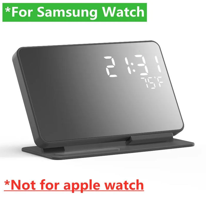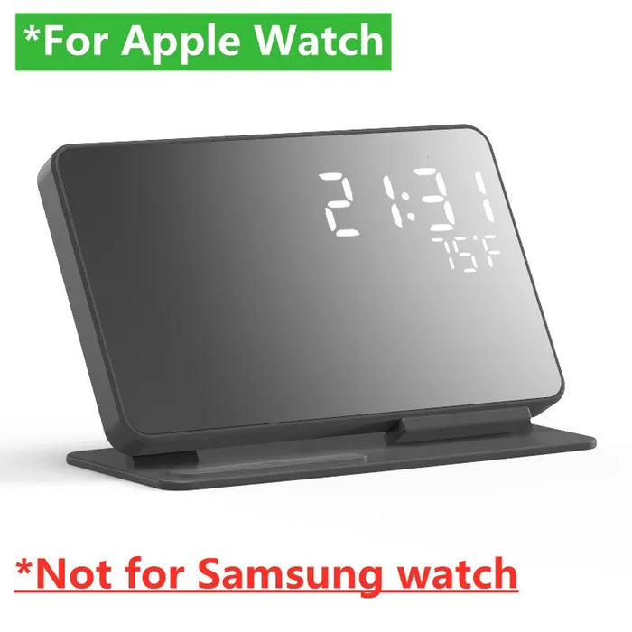 Choose our 4-in-1 Wireless Charger Stand, an all-in-one solution that keeps your devices charged, your schedule on track, and your workspace organized!