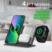 Introducing the 4-in-1 Wireless Charger Stand, a cutting-edge tech accessory that truly simplifies the charging process. This multi-device charging station comes with a range of versatile features. It is the perfect addition to any modern home or office setting. Ideal for both individual and family usage due to its ability to power up four devices concurrently.