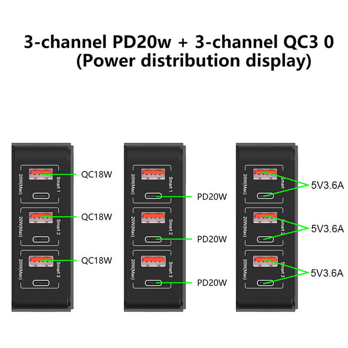 Dive into the world of efficient charging with our feature-loaded, high-capacity charger. This ingenious device, complete with diverse powering capabilities and multiple outputs, is quintessential for all your charging needs. Crafted from a high-grade PC material, it not only offers durability but also caters to a smart exterior.