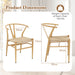 Our wishbone dining chair set adopts Y-shaped integrated backrests and armrests that conform seamlessly to your body shape, ensuring optimal support and reducing back strain during long periods of sitting. Furthermore, the highlight of these chairs is the luxurious kraft paper twine woven seats, offering both comfort and sophistication. Constructed with heavy-duty metal frames and reinforced crossbars, complemented with adjustable footpads, these chairs provide a stable and reliable seating solution for daily use. When the meal is over, you can simply stack one chair on the top of the other, saving available floor space while making it easy to clean the floor. Inspired by mid-century modern aesthetics, featuring curved cutout backs and sleek tapered legs, these chairs are not only functional but also add a touch of elegance to your living space! Ergonomic Design: These wishbone dining chairs adopt Y-shaped integrated backrests and armrests that conform to the natural curvature of your spine, offering superior comfort and support. The curved backrest design makes the chairs more comfy during long meals or work sessions. Unique Twine Woven Seat: The braided seat cushions are crafted with premium hand-woven kraft paper twine, providing a comfortable and breathable sitting experience. Moreover, this distinctive material also adds an element of luxury and texture to your dining area. Sturdy and Stable Construction: Supported by heavy-duty metal frames and reinforced with sturdy crossbars, these armchairs are built to last, ensuring a large loading capacity of 150 kg (each chair). Additionally, there are adjustable footpads for enhanced stability. Easy Storage and Assembly: These stackable chairs are designed with space-saving in mind, easily stacking when not in use to free up space. Setting up these chairs is also a breeze, thanks to the simple structures by only connecting the backrests, seats, and legs. Mid-Century Modern Appeal: With the combination of curved cutout backs, twine woven seats, and cylindrical tapered legs, these mid-century modern accent chairs could create a striking centerpiece in any style room. Wide Application: Each set includes 2/4 chairs, which is perfect for various occasions, from dining areas to offices or even as stylish accent pieces in your living room.