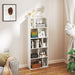 The five-tier structure and 10 open storage compartments provide plenty of space for your everyday items and allow you to display favorite collections or decorative items. Quality engineered wood and strong connections provide excellent load-bearing capacity. What's more, the reliable anti-toppling device can also protect the storage rack from tipping over. You can use this bookshelf in different places, such as office, living room or study. Modern Appearance and Multi-functional Bookshelf:This five-level bookshelf has a very modern geometric appearance and elegant color. It can be used not only as a bookshelf in the study, but also as a storage rack or display shelf in the living room or bedroom. The minimalist design suits most decorating styles, and it will add flair to your room no matter where you put it. Compartmentalized Design and Large Storage Space: This functional bookshelf has a five-level structure and 10 storage compartments of different sizes. It not only provides you with plenty of storage space, but also allows you to sort your items for easy access. It can accommodate your daily necessities, including decorations, books, magazines, potted plants, photo frames. Premium Material and Strong Connection: Made of high quality engineered wood, our bookshelf has great strength. The stable structure provides a total weight-bearing capacity of up to 90kg. In addition, the safe paint layer makes the surface of the shelf smooth and waterproof, which can be easily cleaned by wet towels. Anti-toppling Device: For families with children or pets, it is crucial to purchase a piece of furniture with an anti-toppling device. The anti-tip device on the back of this bookshelf allows you to fix our products to the wall, which can prevent the shelf from collapsing due to collisions, thus ensuring the safety of you and your family. Quick Assembly and Detailed Instruction: The 5-tier storage shelf is easy to assemble. The instructions describe the installation process in detail and all the necessary accessories for the product are included. Just follow the instructions and you will get a wonderful coffee table without spending much time and effort.