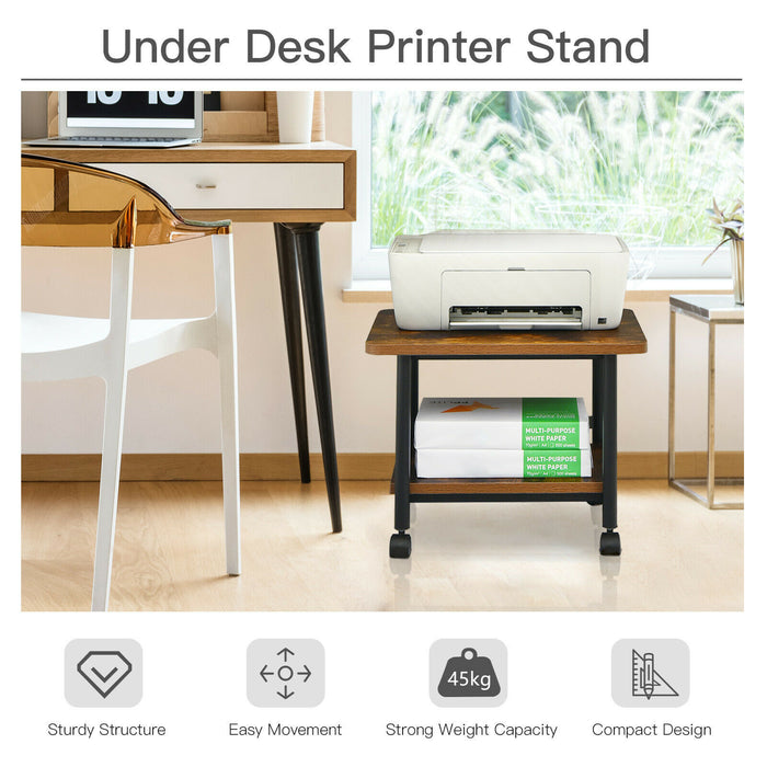 Wooden 2-Tier Printer Stand - Features 360° Swivel Casters in Sleek Black - Ideal for Organizing Office Equipment & Easy Movement