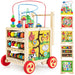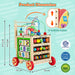 Combining shape and colour recognition and abacus, number and pattern learning, learning clock, animal matching maze and bead maze, the multifunctional activity cube centre helps children learn time, promote cognition, observation and more. Besides, it performs well as a baby walker and offers babies 2 heights to encourage them to take their first steps. Plus, the cube centre comes with removable top, handle and wheels, so that kids can play together. And you can flip over the top to turn it into an extra storage box. Made of selected materials, the educational toy is safe for use. You can take it as a gift to surprise your little one! 6-In-1 Activity Center: The wooden activity cube centre features 4 different sides of shape and colour recognition and abacus, number and pattern learning, learning clock and animal matching maze, keeping baby entertained for hours. Besides, the bead maze and baby walker bring extra fun. Baby Push Walker: The baby push walker helps baby learn to walk and avoids bow legs, and is ideal for development. Furthermore, the convenient handle brings 2 available heights to fit different babies. And the quality wheels ensure slow sliding without noise.Educational Gift: The 6-in-1 activity cube centre is a perfect gift for children over 1 year old on their birthdays, Christmas and other occasions. It helps them improve hand-eye coordination, colour recognition, fine motor skill, math skill and so on. Moreover, it brings parent-child interaction and lets kids enjoy hours of fun.Compact Storage Box: With removable handle and 4 detachable wheels, the activity cube can be easily turned into a compact size for easy storage. In addition, you can flip over the top to store items in the box, and take the cube centre as a kids stool. The built-in handle promotes easy carry.Safe and Reliable Material: The montessori educational toy is made of BPA-free materials and approved ASTM and CPSIA test, safe for children to play. Plus, the solid wood panel enhances the structure and promotes durability. The rounded edges greatly improve safety.