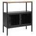 Fine-tune your dining experience or enhance your cozy coffee corner with our sleek cabinet that boasts a generously-sized tabletop complemented by two expansive storage compartments and a chic open shelf. This versatile stand facilitates easy sorting and organization of everything from kitchen essentials to your beloved book collection, ornamental pieces, or even those treasured coffee accessories for the perfect brew setup.