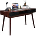 Finished in shades of espresso and black and constructed from high-quality pine wood, particle board, and MDF, this desk measures 120 x 55 x 77cm (L x W x H) and weighs 26 kg. Maintain its pristine condition with minimal effort; the smooth finish allows for easy cleaning. The package includes the office desk and a comprehensive instruction manual. Set it up, settle in, and enjoy a workspace that is as industrious and innovative as you.