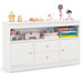 Crafted to offer multiple storage solutions, this toy storage organizer features an open compartment to place frequently used items, such as books and toys. Below it are 2 drawers for storing smaller accessories and 2 single-door cabinets for larger items. Each section can accommodate a variety of items, helping keep your child’s playroom or bedroom clutter-free. This toy organizer can also be used as a bookshelf, display cabinet and storage cabinet, suitable for the living room, study, bedroom, nursery, kindergarten, etc. Equipped with 2 anti-toppling devices and round corners, this wooden storage chest is a safe addition to any child's space. Constructed from high-quality materials, the cabinet is designed to withstand daily wear. Practical Storage Solution: Featuring a spacious top, an open compartment, 2 single-door cabinets and 2 pull-out drawers, this storage chest offers large storage space for toys, books, clothes, decorations, etc. It helps cultivate children's organizing abilities and keep the playing area neat and tidy. Enhanced Safety and Stability: Designed with your child's safety in mind, this kids toy storage organizer features round corners and splinter-free edges. In addition, it also includes 2 anti-toppling kits and plastic angle code bracket fasteners to ensure the wooden cabinet stays stable and secure without tipping over. Wide Application: Crafted for versatility, this toy storage organizer can also be used as a bookcase, display cabinet, TV stand and more. It is perfect for enhancing organization in the living room, kids room, bedroom, study, playroom, nursery, daycare center and kindergarten. Considerate Design: 62 cm height is ideal for children to fetch their favorite books and toys. The soft-close hinges allow for a quiet door enclosure, while the drawers can be easily pulled out with premium metal slides and handles. Plus, the bookshelf comes with anti-slip foot pads to protect your floors from scratches. Modern Charm: Not only functional, but this storage display cabinet also boasts a modern and chic style that will complement any room decorations. It also features screw hole stickers to cover unsightly screws, maintaining a neat and attractive appearance.