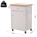 Our kitchen cart boasts a generous drawer complemented by a sturdy countertop and a capacious cabinet, featuring two levels of shelving perfect for an organized pantry or storing a vast range of kitchen necessities.