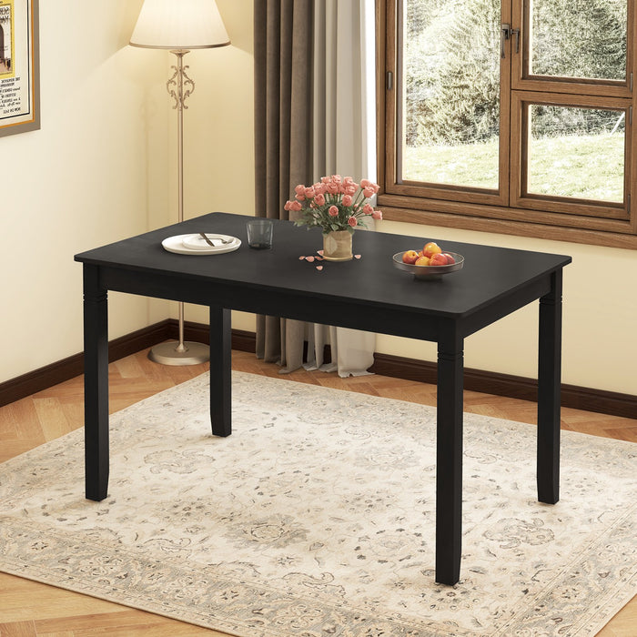 The 122 x 74 cm wooden dining table is suitable for 4 people to enjoy cozy dining time. And there are 2 exquisite color options (gray/black) for you to choose from, and each color complements different decor styles beautifully. Other than that, the supporting legs are crafted of natural and safe rubber wood, which is sturdy and reliable enough, ensuring stability and durability for everyday use. And it adopts a veneered MDF tabletop, which is waterproof and easy to clean with a damp cloth. Whether it's a family dinner or a gathering with friends, this wooden dining table sets the stage for memorable moments. Minimalist and Stylish Appearance: This modern rustic wooden dining table is characterized by a refined silhouette and elegant gray finish, which adds a contemporary touch and sophistication. It is perfect for contemporary settings. Solid Rubber Wood Construction: The dining table boasts thickened rubber wood supporting legs, ensuring strong loading capacity of 150 kg and exceptional durability. Additionally, there are anti-slip footpads for enhanced stability. Dining Table for 4 People: This kitchen table measures 122 x 74 x 76 cm (L x W x H), which provides enough space for 4 people to dine comfortably, making it perfect for family meals or gatherings with friends. Easy Maintenance and Assembly: The dining table adopts a premium MDF tabletop with birch wood veneers, which is both waterproof and scratch-resistant, making it a breeze to clean up spills or messes. Besides, with its simple structure and clear illustrations in the user’s manual, the table is easy to set up. Versatile Use: Whether it's for your dining area, kitchen, or even as a stylish workspace, this versatile dining table is a perfect addition to various settings, from everyday meals to working.