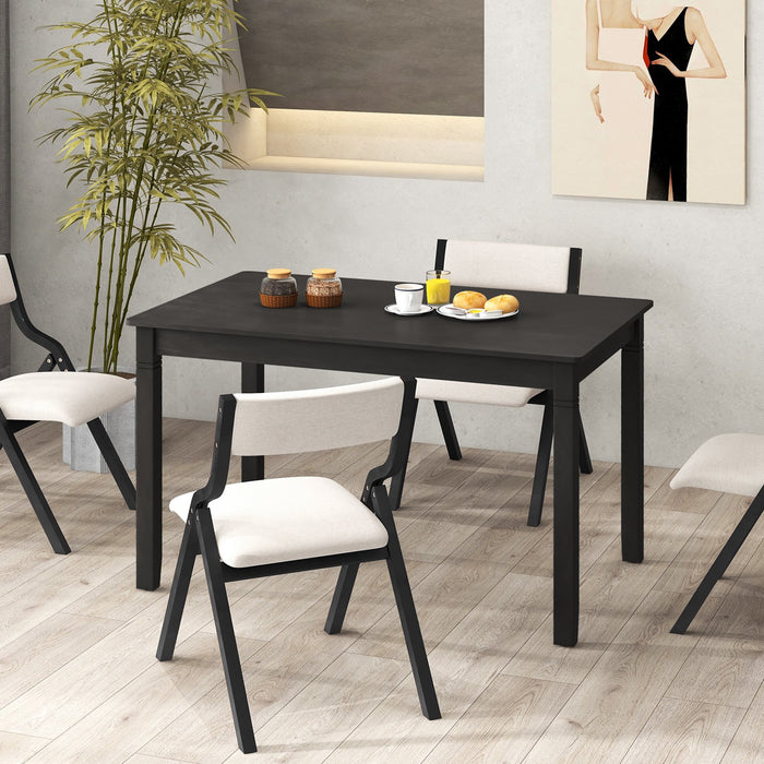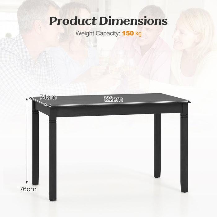 Colour: Black/Grey Material: Rubber Wood, MDF Overall Dimensions: 122 x 74 x 76 cm (L x W x H) Weight Capacity: 150 kg Net Weight: 17.5 kg Box Qty: 1 Package Includes: 1 x Wooden Dining Table 1 x Instruction Manual