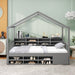 The platform bed includes a built-in bedside shelf with 8 storage cubes to ensure your bedroom is well-organized. Maximize space with the helpful storage assistant that boasts under-bed storage, including 6 storage cubes and an enclosed cabinet. Thanks to the wood structure and 10 plywood slats, the bed frame can support up to 200kg for a secure sleep. The platform design ensures mattress stability without the need for a box spring, suitable for mattress thicknesses of 15cm to 20cm. More reliable structure details await your discovery. Adorable House-Shaped Frame: The single size bed frame is designed with a delightful house-shaped structure, which not only fuels the imagination but offers endless possibilities for decoration with small flags, string lights, photos, etc. Spacious Bedside Storage: The integrated bedside shelf includes 8 storage cubes and a convenient countertop. Therefore, the house bed can keep kid’s essential items readily accessible and perfectly organized. Expansive Under-Bed Storage: Maximize kids bedroom’s storage capacity with the platform bed’s under-bed section, which includes 6 storage cubes and an enclosed cabinet. This ample space is perfect for organizing bed sheets, shoes, books, etc. Robust Wooden Construction: The kids bed boasts a sturdy solid wood frame with 10 strong plywood slats that enhance its load capacity up to 200kg. This robust construction ensures a secure sleeping solution that supports a restful night’s sleep. Stable Platform Bed Design: The house-shaped bed features an embedded platform surface that securely holds your mattress in place without the need for a box spring. The bed frame is optimally designed for mattress thicknesses from 15cm to 20cm.