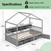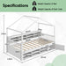 Colour: Grey/White Material: Solid Wood, MDF, Plywood Overall Dimensions: 201 x 116 x 170 cm (L x W x H) Size of Sleeping Surface: 191 x 91 cm (L x W) Size of Bedside Cabinet Top: 191 x 22 cm (L x W) Inner Size of Each Cube: 46 x 21 x 11 cm (W x D x H) Inner Size of Enclosed Cabinet: 46 x 21 x 24 cm (W x D x H) Load Capacity of Bed: 200 kg Load Capacity of Bedside Cabinet Top: 25 kg Load Capacity of Each Storage Cube: 15 kg Load Capacity of Enclosed Cabinet: 15 kg Recommended Mattress Size: Single Size Recommended Mattress Thickness: 15-20 cm Net Weight: 59 kg Package Includes: 1 x House Bed 1 x Instruction Manual