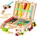 Included in our portable, durable wood storage case you will find a variety of tools and accessories such as drawers, saws, rulers, a variety of screwdrivers, wooden mallets, a claw hammer, wrenches, nails, screws, pliers, and an assortment of wood parts. Truly a toolbox that keeps giving.