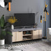 Made from high-quality particle board, our TV stand boasts a beautiful wood grain finish complemented by chic grey accents. This piece is a testament to elegance and durability, seamlessly fitting into modern homes with its clean lines and simple silhouette.