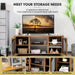 The TV stand is made of thick MDF and rustproof sprayed steel for better quality. Both materials positively influence the overall weight capacity (110 kg). Besides, the entertainment centre features an extra steel leg equipped with an adjustable foot pad for better stability. The console cabinet is also a great storage solution. The 2-layer open shelf accommodates video games. Because of two 3-position adjustable shelves, the internal space of closed compartments is adaptable for more flexible storage. Finally, the TV table comes with some practical details. The steel mesh doors feature buffering hinges and zinc alloy handles for convenient pulling. If you are looking for a console table like this, do not hesitate to place an order! Practical Storage Addition: The 147 x 40cm countertop is wide enough to accommodate a TV up to 65 inches. The 2-tier open shelf and compartments with steel mesh doors are great for video game storage. Especially the compartments feature two 3-position adjustable shelves in total for customized storage areas. High-Strength Construction: The entire structure is made of thickened MDF which is very smooth and waterproof for easy cleaning. Apart from four MDF legs, the TV console cabinet has a fifth support leg made of rustproof sprayed steel fitted with an adjustable foot pad for a better load capacity of 110kg. Diverse Considerate Details: Each steel mesh door is equipped with buffering hinges avoiding accidental pinch injuries while reducing noise. Plus, made of high-quality zinc alloy, the handles feature a smooth surface and provide a lot of convenience for pulling the door. Industrial Appearance: Rustic brown MDF panels are decorated with light vintage textures to make the TV stand look more eye-catching. In addition, all metal parts are either painted in a simple black or designed to be vintage, both accentuate the overall industrial style. Undoubtedly, the TV table will bring out a different look to your home. Versatile Console Cabinet: Under the guidance of detailed instructions, you will quickly finish assembling the media entertainment stand. Then, according to your needs, it can be turned into a display cabinet or a TV stand. In different places, such as the living room, bedroom, study, attic, etc., it will offer you maximum practicality.