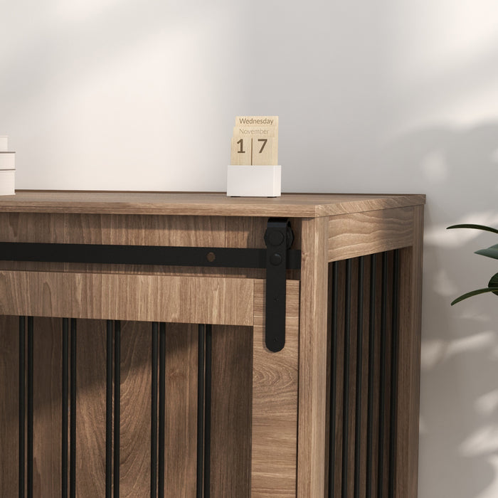 - Designed with a contemporary barn door aesthetic that complements your home interiors