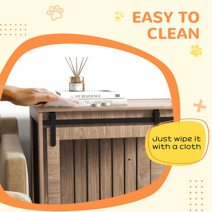 Constructed with premium particle board framed by robust steel, this crate is designed to withstand the test of time, promising a durable retreat for your pet. Accessibility is a breeze with a smooth sliding door mechanism, complemented by a secure latch to keep your pet safely contained when necessary.