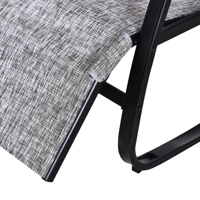 The outdoor rocker boasts a sturdy metal frame for a strong foundation, offering you a trusted seat day in, day out. Partnered with a breathable Texteline sling seat, it not only stands up to various weather conditions but also keeps you comfortably cradled, promoting even weight distribution and minimizing pressure points.