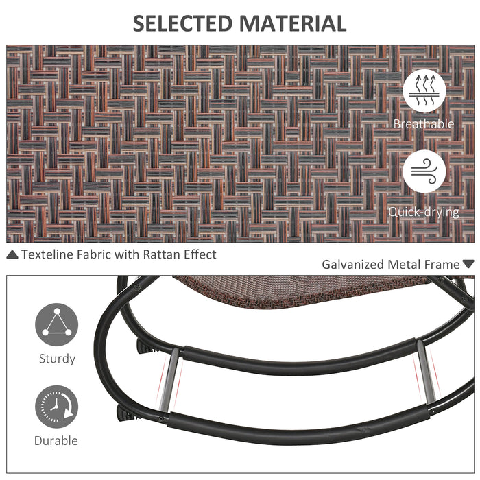 Constructed with a curved metal frame, the chair bestows a gentle rocking motion, allowing for a leisurely, unwinding experience. Its robust architecture not only ensures reliability under your stature but also provides a soothing oscillation, perfect for spontaneous relaxation sessions.