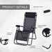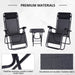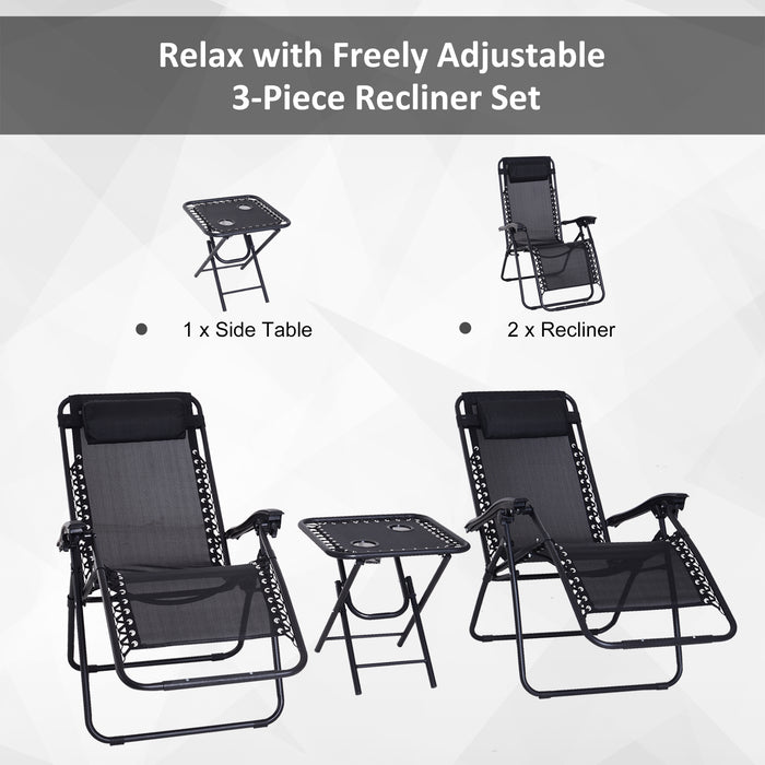 - Includes two adjustable zero-gravity chairs with padded headrests and a matching side table